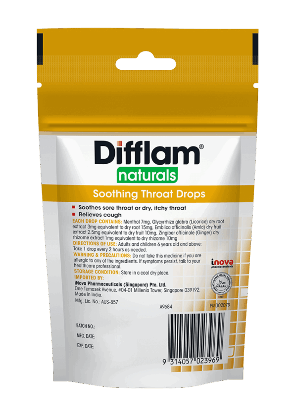 Soothes sore throat. Relieves cough. Crafted with a blend of trusted natural ingredients. Contains Indian gooseberry (amla), licorice, and ginger, which have anti-inflammatory and soothing properties, with menthol for a refreshing, cooling relief
